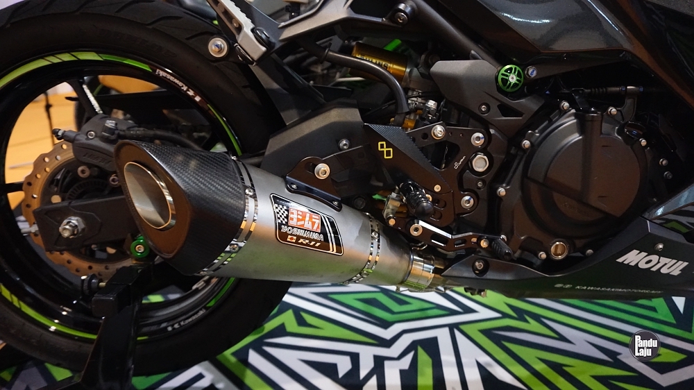 - Sistem ekzos Yoshimura (bukan unit tulen) dikustom dan disambung dengan paip ekzos standard Ninja 250.