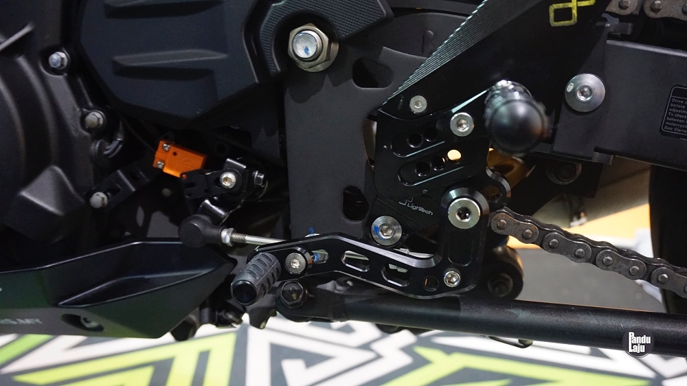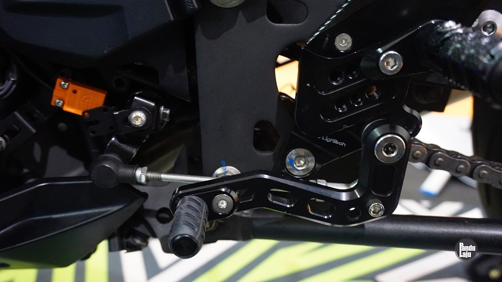 - Set peg kaki aftermarket digunakan. Kotak gear asal ditambah ciri sistem QuickShifter (Tune Boss).