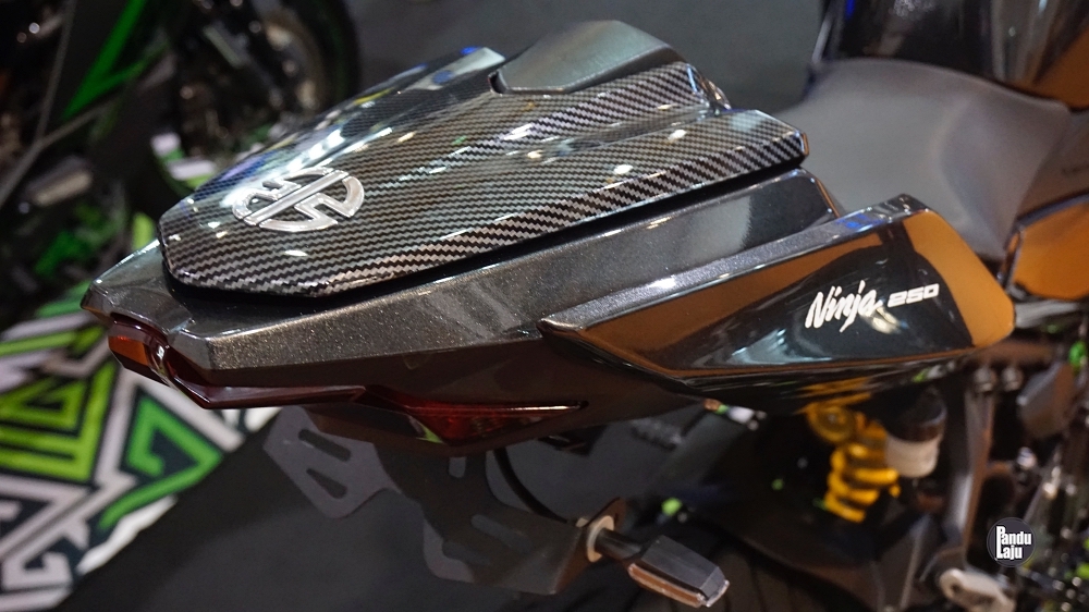 - Pelana pembonceng ditutup panel ala karbon.