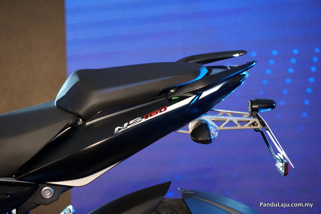 Pilihan dua warna, putih dan biru menyerlahkan karakter sporty NS160. Pemuka dipasangkan kluster instrumen digital dan analog yang memaparkan maklumat jentera dan tunggangan. Sistem brek diserahkan kepada set brek cakera hidraulik kembar dengan rim 17 inci yang dibalut tayar 90/90 (depan) dan 110/80 (belakang).