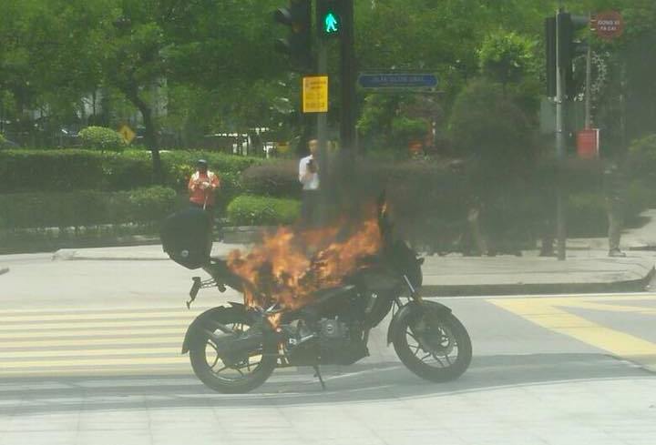 PETANG tadi kami dikejutkan dengan perkongsian saudara Zulkifli Nasir, pemilik Modenas Pulsar NS200 dalam grup Facebook Modenas Pulsar Malaysia yang mendakwa motosikalnya itu terbakar tiba-tiba ketika sedang ditunggang. Menurut Zulkifli, dia sempat menyelamatkan diri dengan segera memberhentikan motosikal di bahu jalan apabila enjin mati mengejut sebelum asap putih keluar dari celahan bawah pelana dan api mula marak membakar hampir seluruh jenteranya itu.