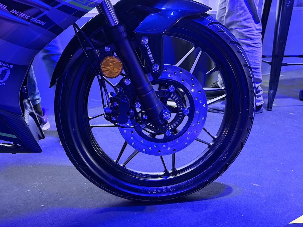 - Sistem suspensi: Fork teleskopik (depan) dan monoshock (belakang)
