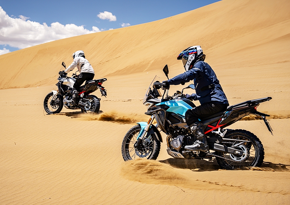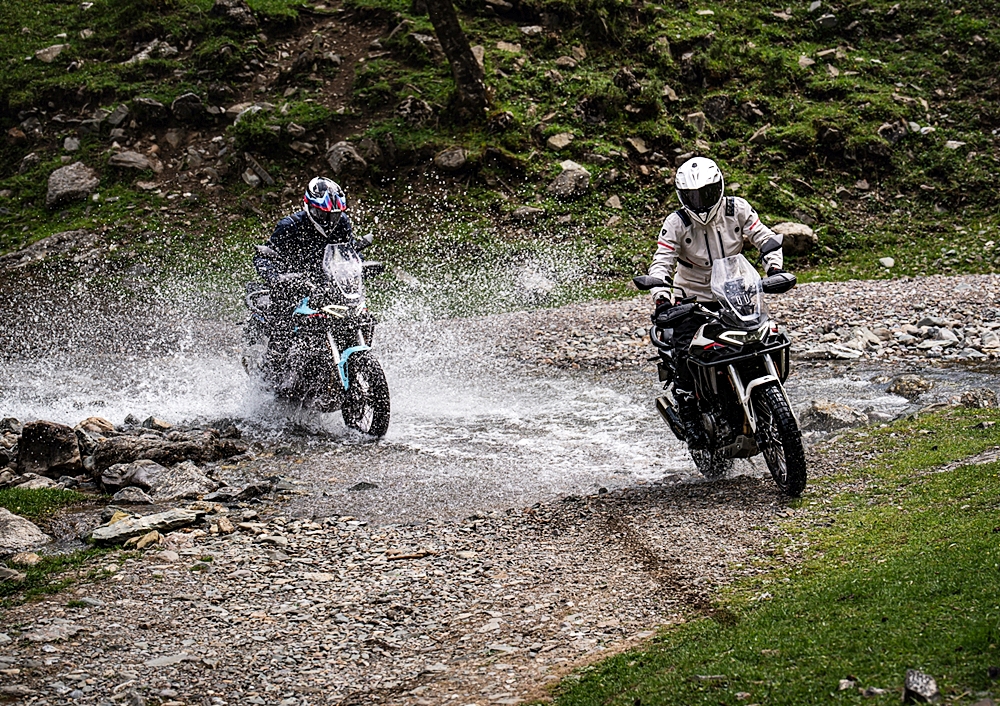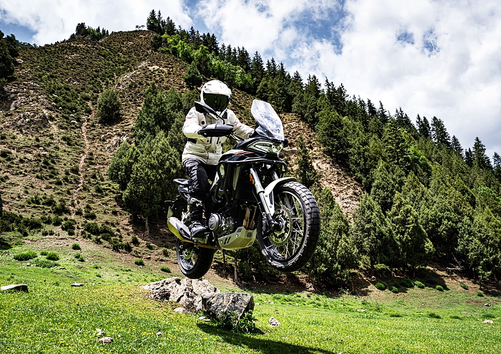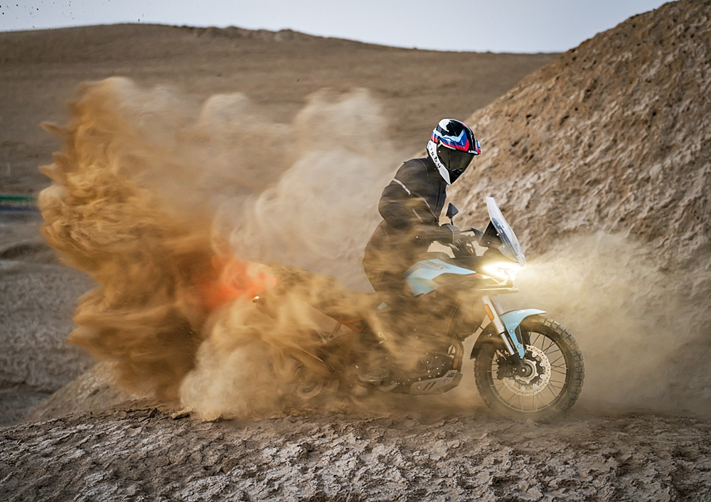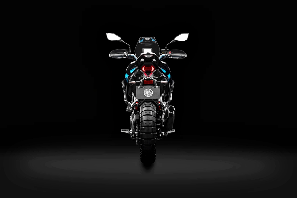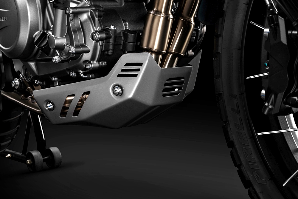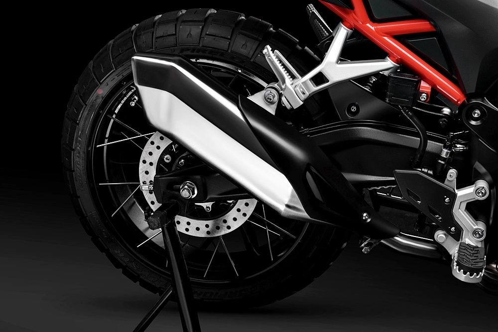 Gabungan roda jejari 19 inci depan dan 17 inci belakang dengan tayar dua guna Pirelli membolehkan jentera ini bergerak yakin di atas asfalt, kerikil dan laluan off-road ringan .
