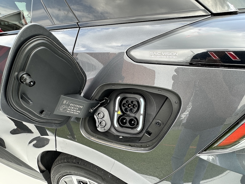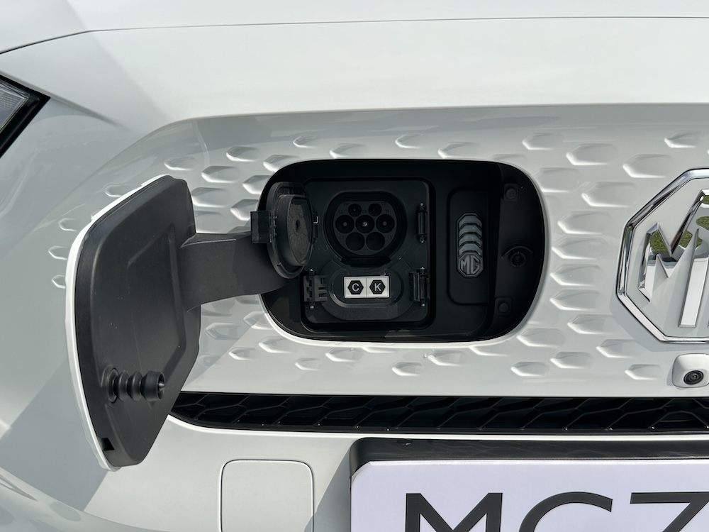 - Port mengecas ZS EV diletakkan di gril depan, jenis CCS2 untuk pengecas pantas (DC) dan standard (AC).