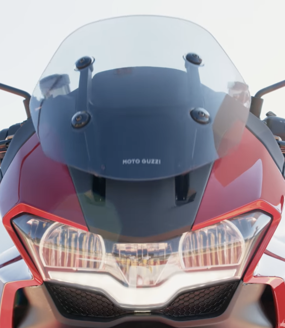 - Ciri paling menyerlah ialah sistem aerodinamik aktif (AAS) yang berfungsi mengawal deflektor angin secara automatik di sisi tangki minyak. Moto Guzzi mendakwa, ciri tersebut dapat mengurangkan tujahan angin 22 peratus.
