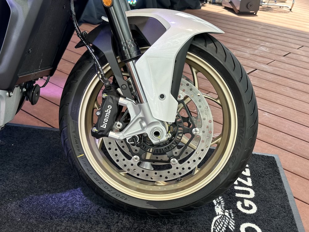 - Brek cakera kembar 320mm dengan kaliper 4-piston Brembo berserta Sistem Brek Anti-Kunci (ABS)