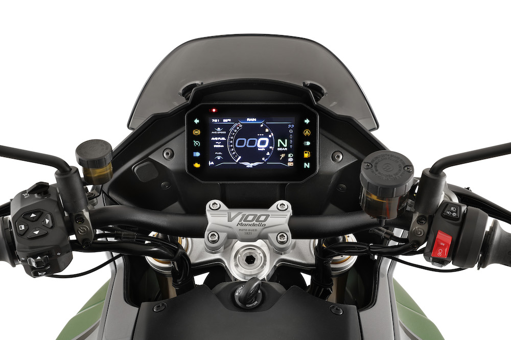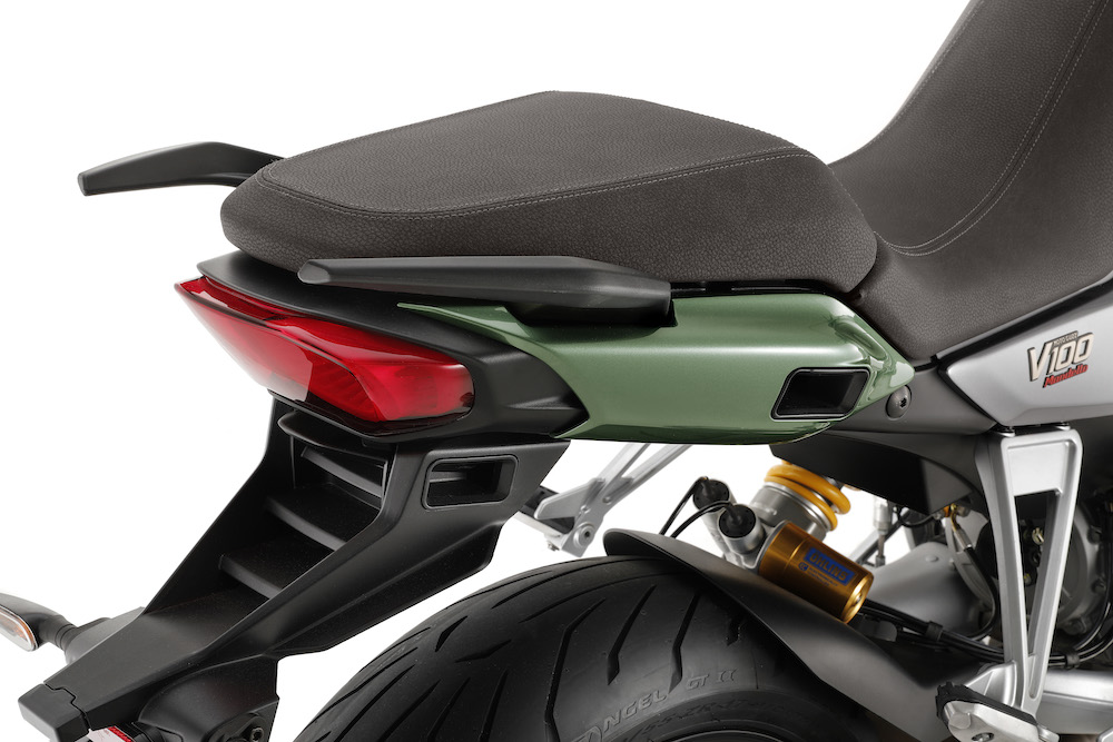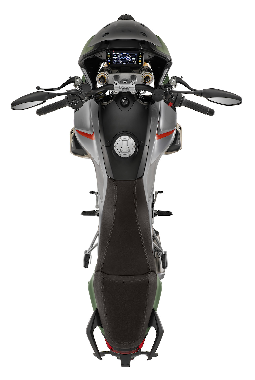 Ada empat warna ditawarkan: Bianco Polare (V100 standard), Rosso Magma (V100 standard), Verde 2121 (V100 Mandello S), dan Grigio Avanguardia (V100 Mandello S).