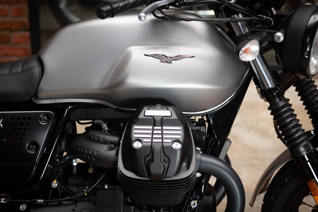Satu lagi aspek inovatif enjin Moto Guzzi ialah cakera klac kering tunggal 170mm, bertujuan meningkatkan kelebihan dan reliabiliti jentera dari semasa ke masa selain mengurangkan beban tuil pada bar hendal. Motosikal dengan gaya desa bandar atau urban country itu diserlahkan menerusi penampilan tayar besar dengan rim jejari.