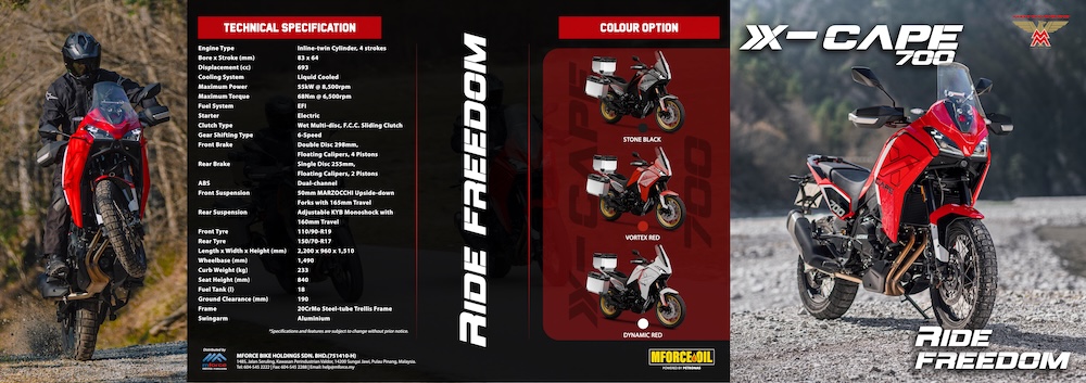 JENAMA motosikal Itali-China, Moto Morini X-CAPE 700 2026, rasmi memasuki pasaran Malaysia dengan menawarkan pilihan baharu dalam segmen motosikal adventure touring kelas middelweight yang semakin mendapat perhatian penunggang tempatan.