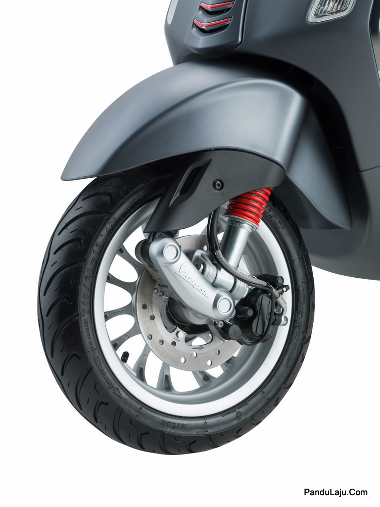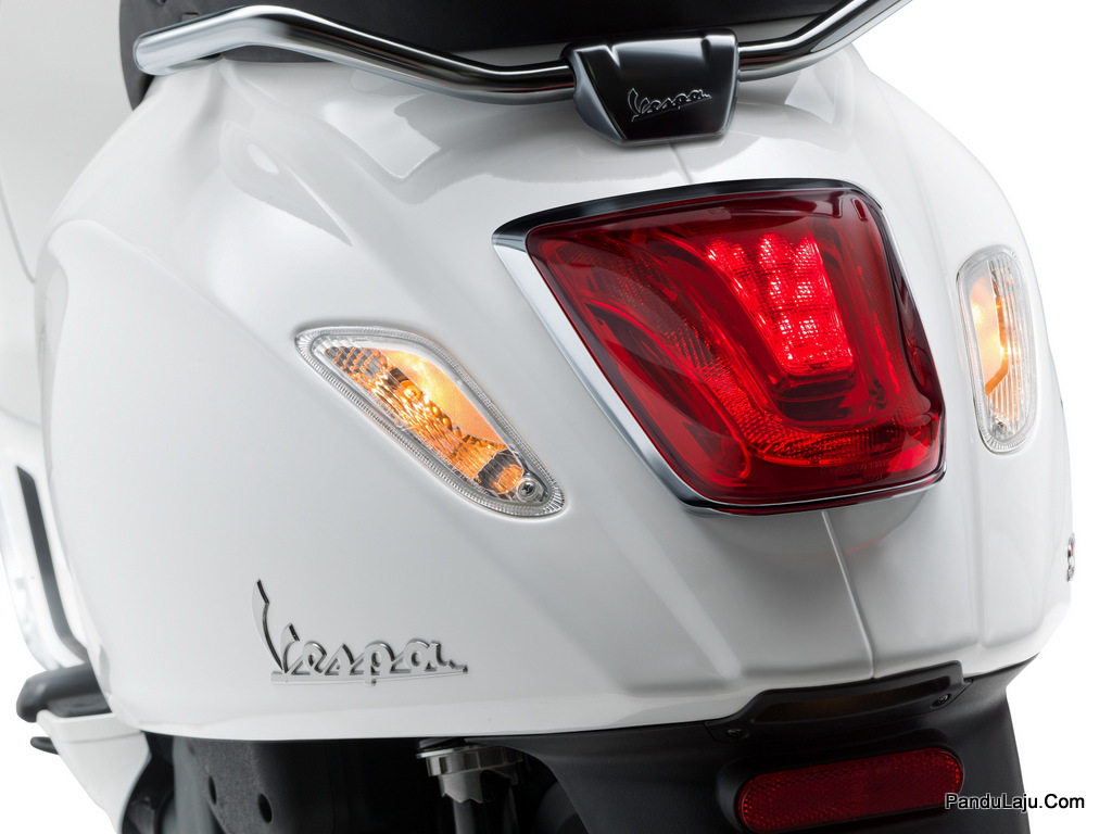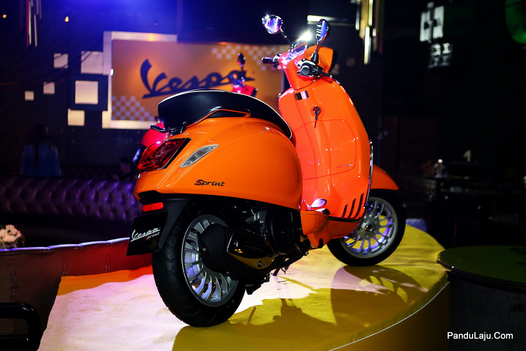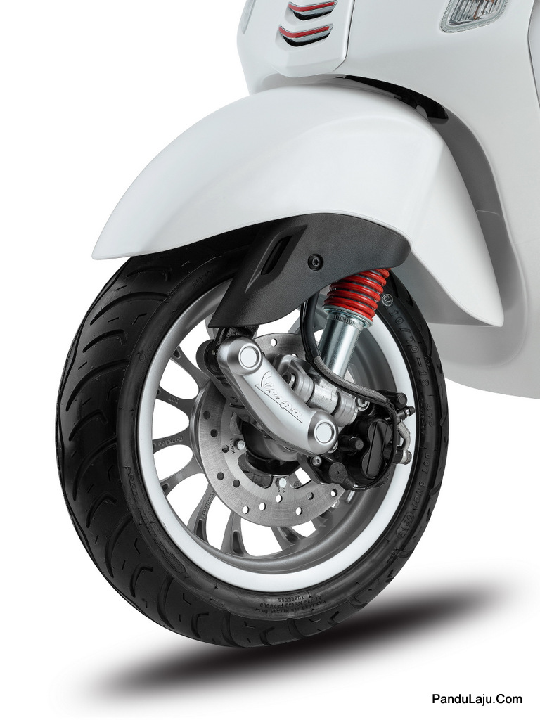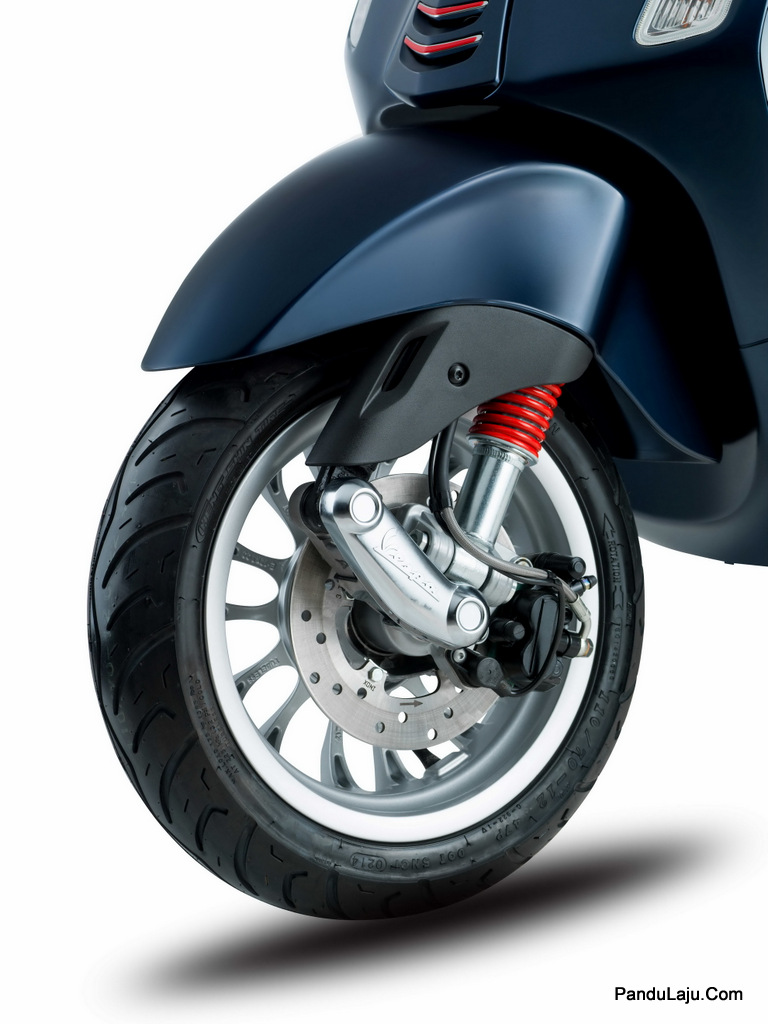 Untuk tampak lebih moden, ia turut hadir dengan lampu nyalaan siang LED. Lebih menarik, Vespa Sprint dipadankan dengan rim aloi bersaiz 12-inci.