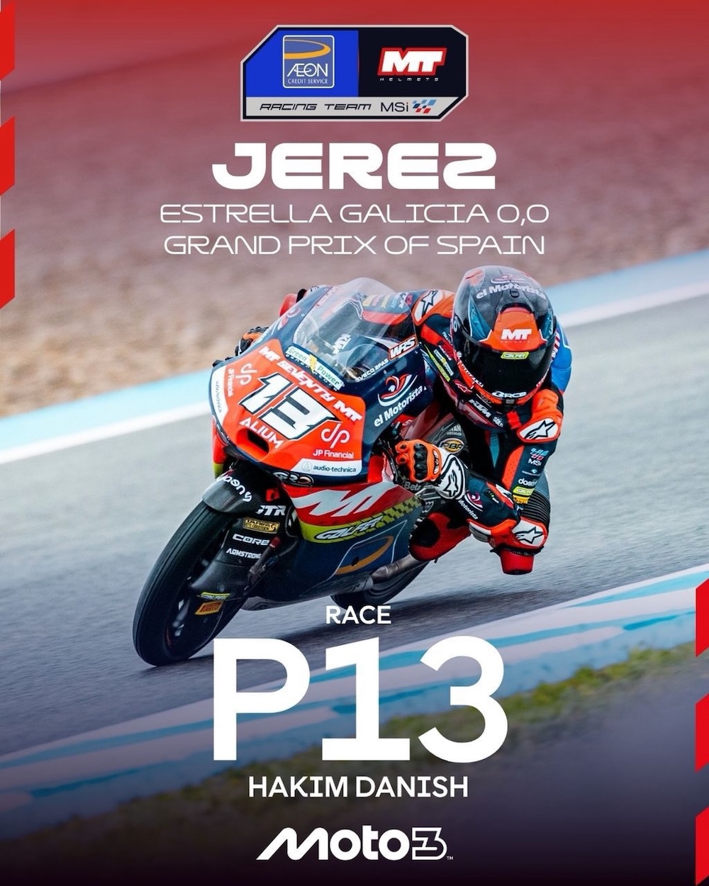 PELUMBA muda negara, Hakim Danish Ramli terus menunjukkan peningkatan konsisten dalam Kejuaraan Dunia Moto3 apabila berjaya menamatkan saingan Grand Prix Sepanyol di Litar Jerez di kedudukan ke-13.