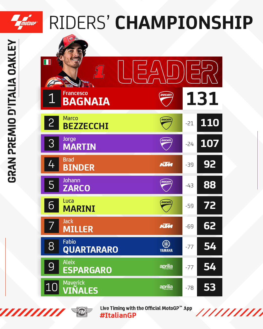 - Francesco Bagnaia – Ducati Lenovo (GP23)