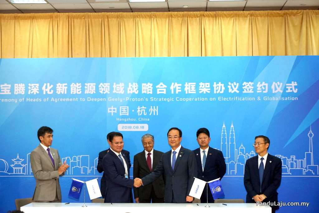 Majlis tandatangan MoU disempurnakan antara Ketua Pegawai Eksekutif dan Presiden Geely, An CongHui dan Syed Faisal. Ia turut disaksikan sendiri oleh Perdana Menteri, Tun Dr. Mahathir Mohamad bersama Duta China di Malaysia, Bai Tian dan Pengerusi Geely, Li Shufu.