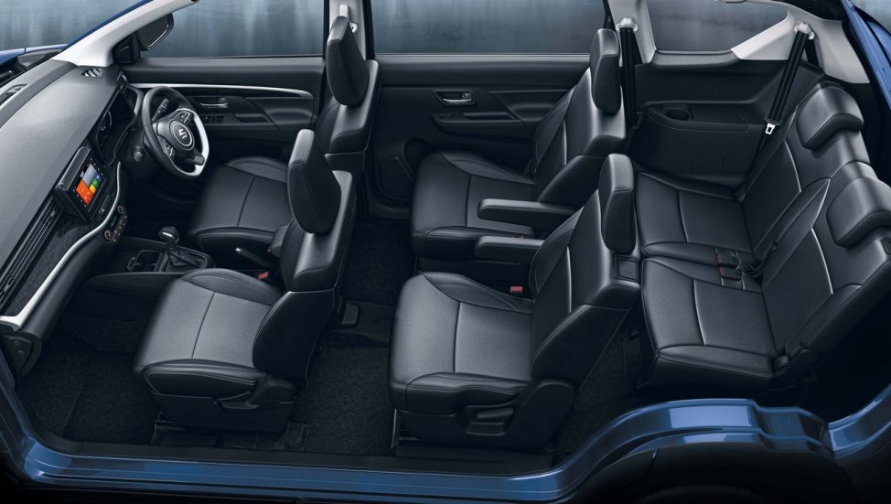 Ruang kabin Maruti XL6 menawarkan kemasan hitam dengan aksen perak untuk aura premium. Konfigurasi kerusi 2+2+2 didatangkan dengan kerusi kapten di barisan tempat duduk kedua dan kerusi belakang boleh lipat penuh.