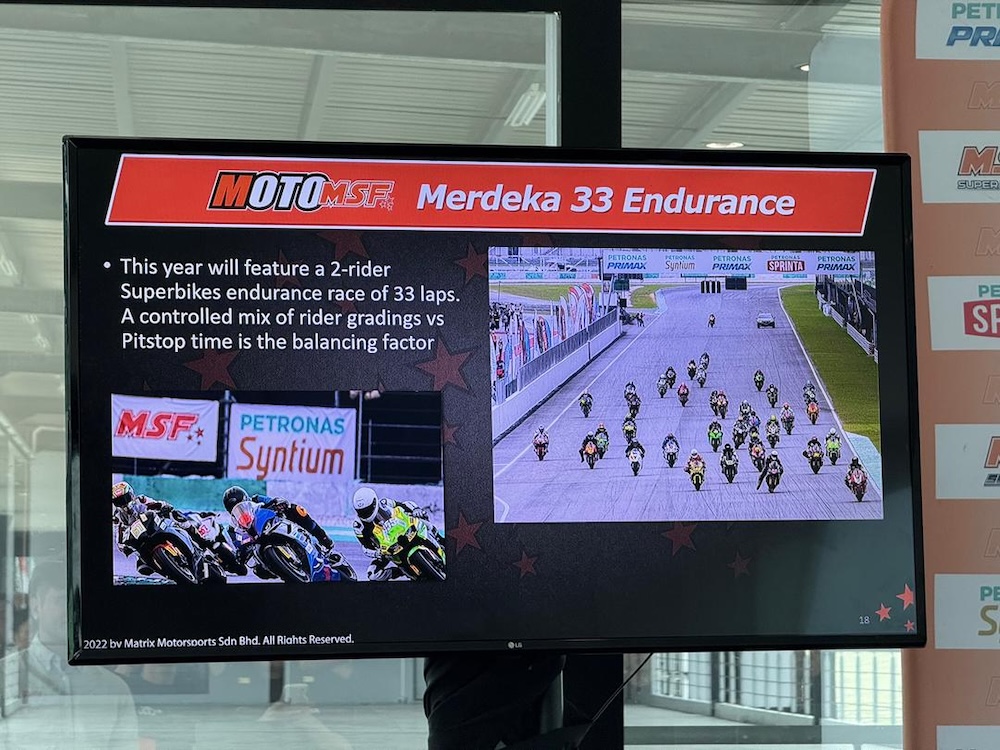 Bagi kategori dua roda, MotoMSF Superbikes pusingan perlumbaan enduran kini bertambah panjang daripada 12 pusingan kepada 33 pusingan.