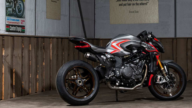 - Tidak ada kuasa ekstra daripada trenkuasa 4-silinder iaitu enjin sama seperti Brutale 1000 standard, menawarkan kuasa 208hp. Jika ditambah kit lumba yang dikhasnya untuk kegunaan litar, output kuasa meningkat kepada 215hp.