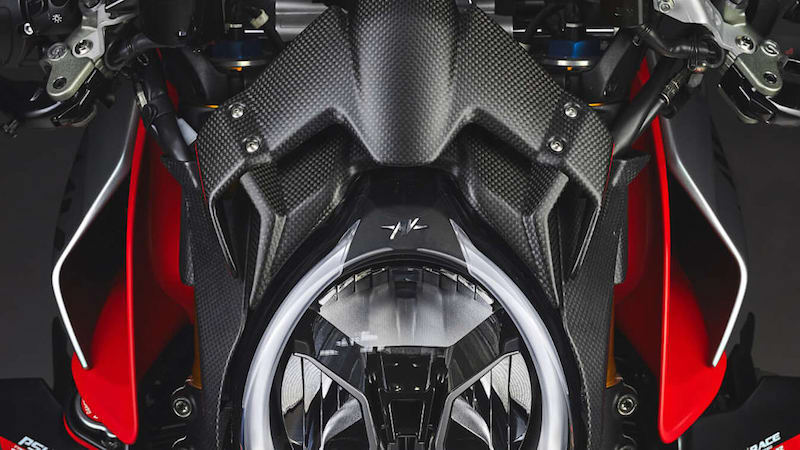 - Kowl bahagian depan sebenarnya terhasil menggunakan winglet kompleks dan dipasang atas lampu utama. Tujuannya untuk meningkatkan daya tekanan ke bawah roda depan. Varian itu juga ada winglet pada sisi motosikal.
