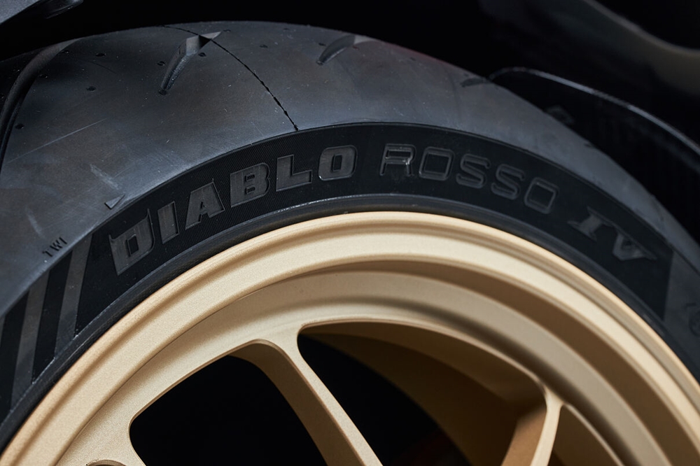 - Rim tempa ringan untuk mengurangkan jisim tanpa pegas (unsprung mass) dengan dibalut tayar Pirelli Diablo Rosso IV 120/70–17 (depan), dan 190/55–17 (belakang)