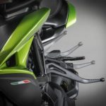 BREK: Cakera apung 320mm dengan kaliper radial Brembo 4-pistol dan silinder master Brembol pam-radial (depan); cakera 220mm dengan kaliper Brembo 2-piston (belakang)