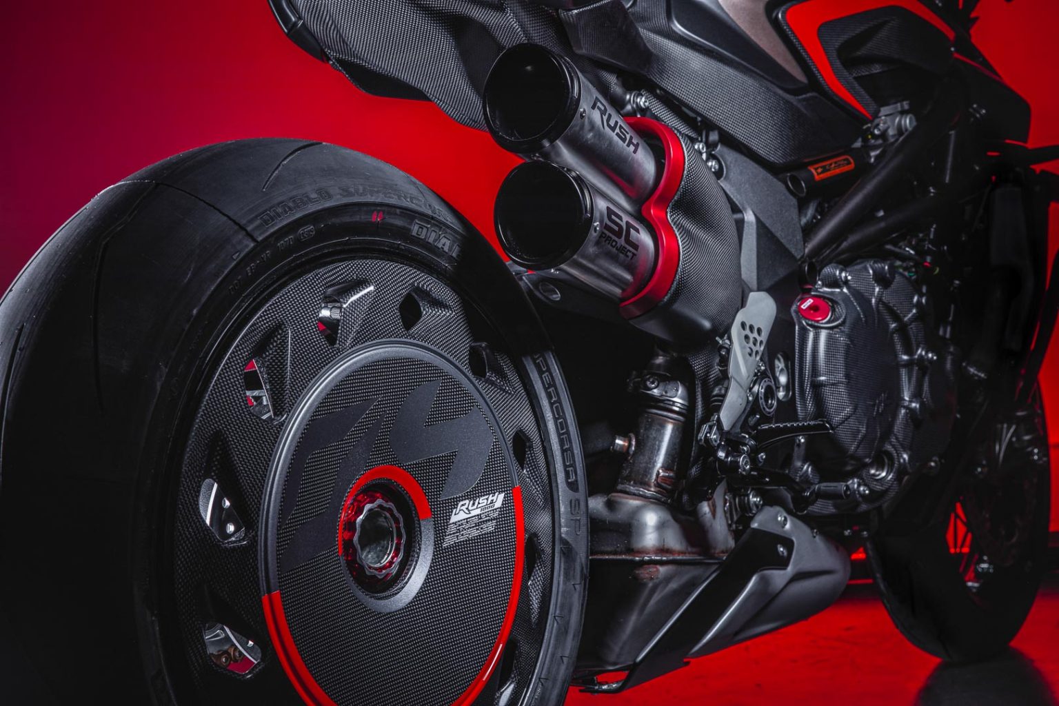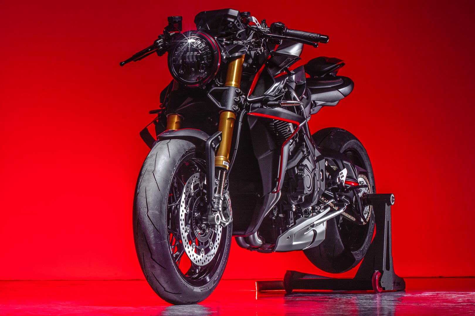 BREK: cakera apung kembar 320mm, pam radial Brembo, kaliper radial 4-piston Brembo Stylema (depan); cakera tunggal 220mm, pam brek Brembo PS13, kaliper Brembo 2-piston (belakang); Sistem ABS Bosch 9 Plus dengan Mod Lumba dan Mitigasi Angkat Roda Belakang (RLM)