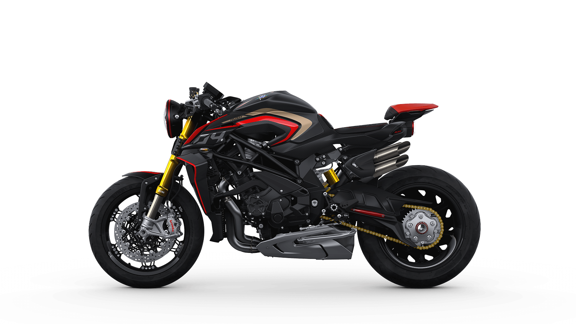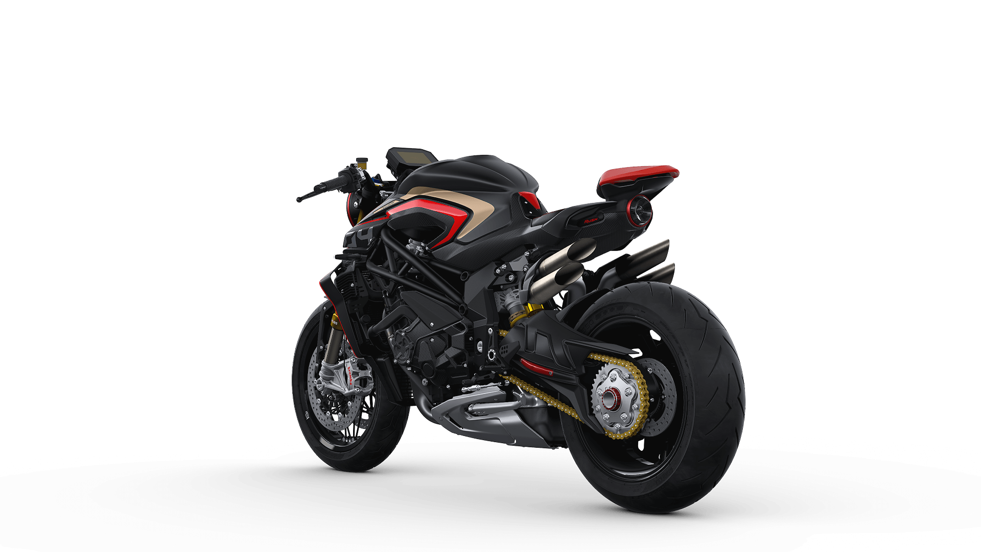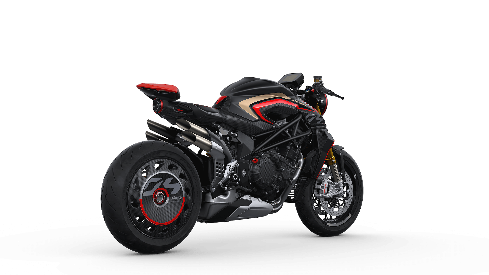Rush 1000 ialah Brutale 1000 RR versi edisi terhad dengan kuasa lebih 200hp dan kelajuan maksimum yang khabarnya mampu mencapai 300kmj! Selain kelajuan menakjubkan, jentera ini dilengkapkan ciri suspensi Öhlins semi-aktif, panel pemuka TFT dengan Bluetooth, lampu selekoh LED dan penutup rim belakang gentian karbon dengan rekaan aerodinamik unik.