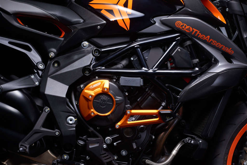 MV Agusta menumpukan kepada hiasan bahagian tertentu seperti seragam jingga hitam untuk menguatkan identiti TheArsenale selain menjadikan model tersebut lebih agresif. Bagaimanapun, harga tidak dipaparkan.