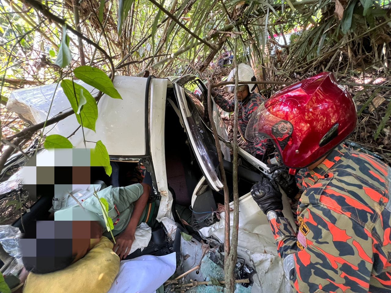 Sejurus tiba di lokasi kejadian didapati mangsa lelaki yang memandu Perodua Myvi cedera parah dan patah kaki kiri, manakala penumpang lelaki di bahagian depan cedera ringan dan mengalami patah tangan kiri,” katanya.