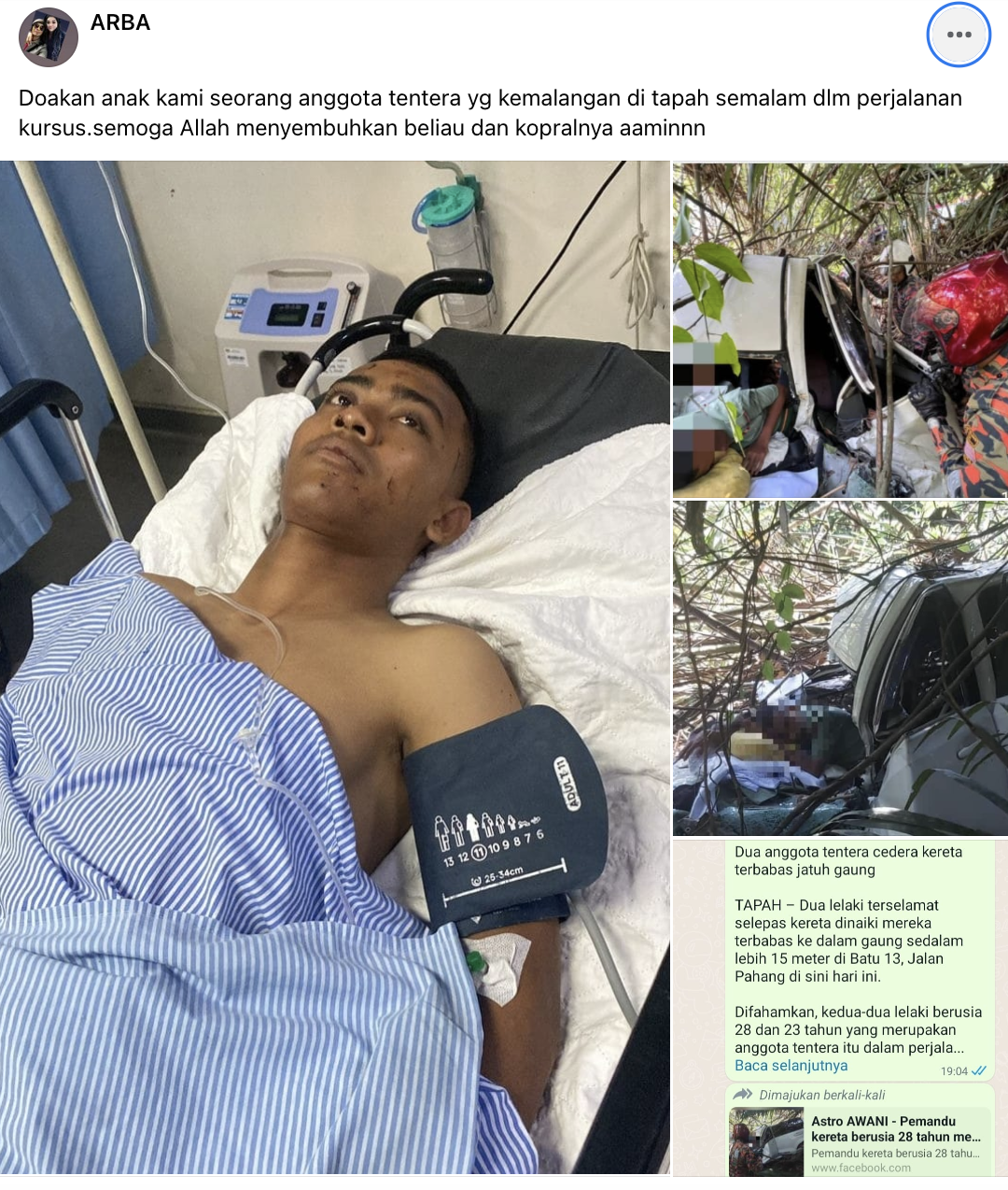 Sabarodzi berkata, anggota tentera terbabit yang tersepit berjaya dikeluarkan dari kenderaan dan dibawa keluar dari lokasi kejadian.