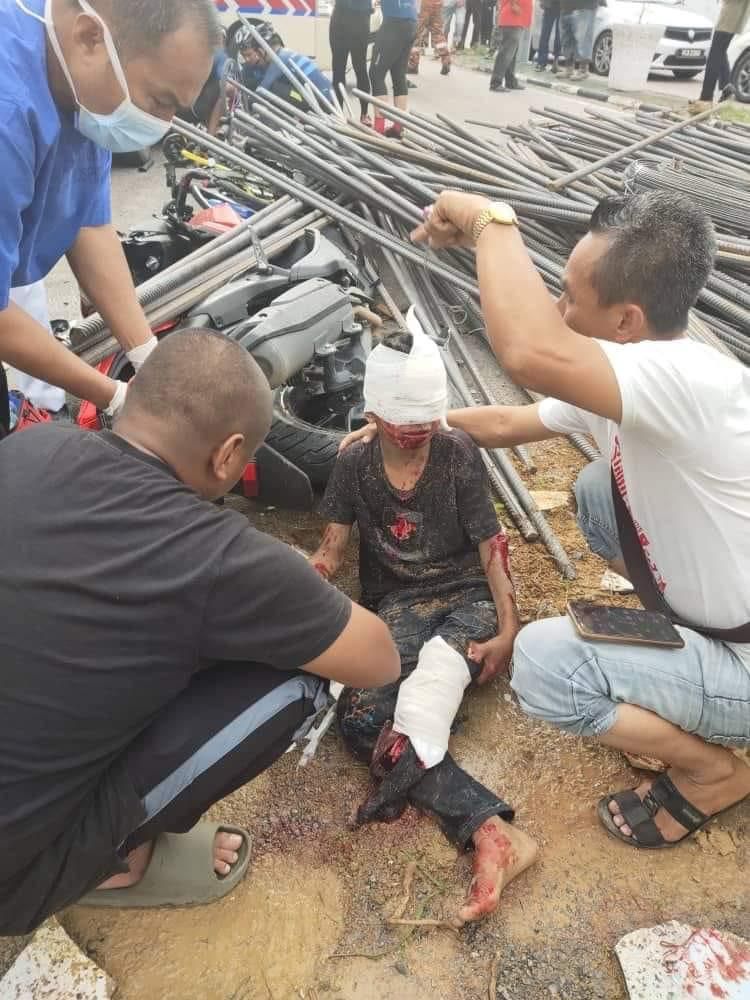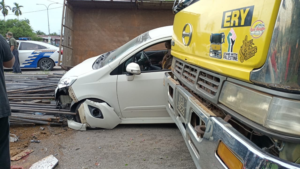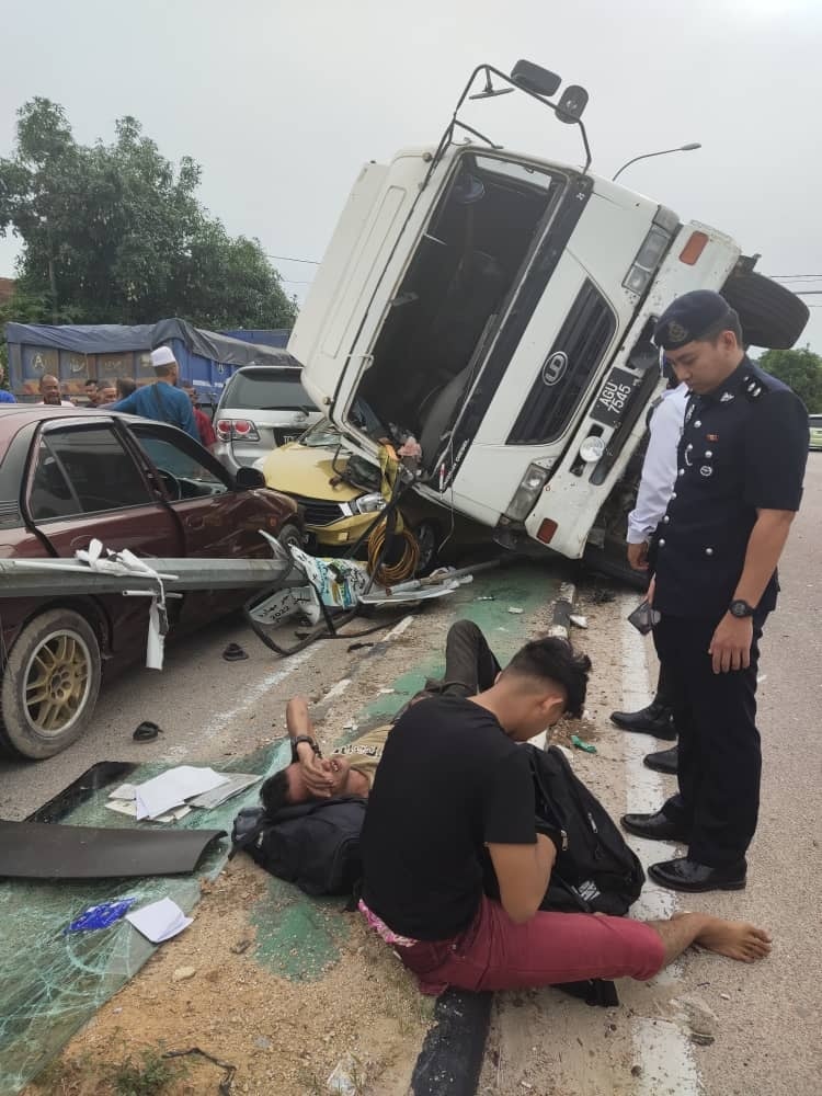 Dalam insiden kira-kira jam 9.05 pagi itu, sebuah lori muatan besi dilaporkan terbalik dan menghempap kenderaan lain.