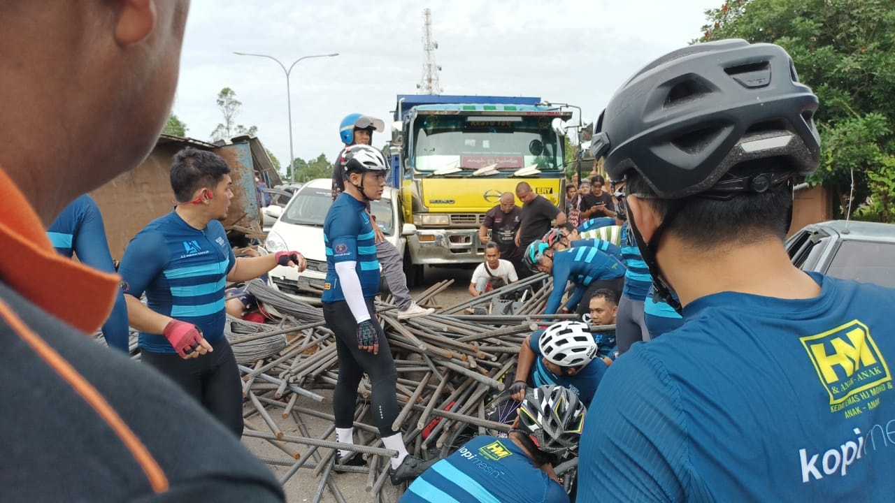 Kenderaan terlibat terdiri daripada sebuah lori muatan pasir, sebuah lori muatan besi, sebuah Toyota Fortuner, 21 basikal, sebuah Perodua Alza, sebuah Proton Saga, sebuah Myvi dan dua motosikal.