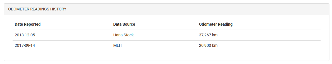- Sejarah Pemilik Kereta – Mendedahkan jumlah pemilik kenderaan, tahun dibeli, jenis pemilikan (sama ada personal atau komersial), sejarah import atau eksport, dan anggaran perbatuan per tahun serta bacaan odometer peling terkini. Maklumat ini berguna untuk memastikan tidak berlaku penipuan odometer, atau jika anda mahu mencari kenderaan dengan satu pemilik sahaja.