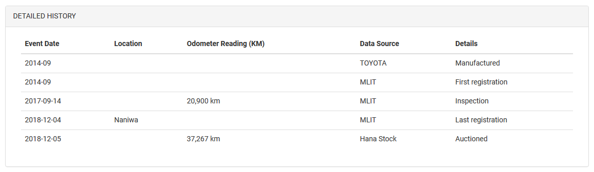 Ini ialah sejarah penuh kereta tersebut yang bukan saja dari rumah lelongan, tetapi juga daripada Kementerian Tanah, Infrastruktur, Pengangkutan dan Pelancongan (MLIT) dan agensi kerajaan lain di Jepun.