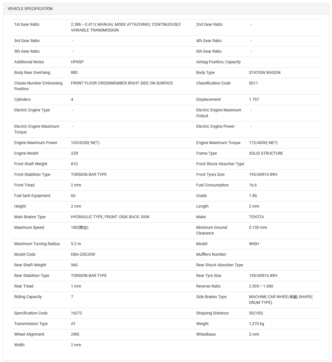 Bagi kenderaan import terpakai dari Jepun, maklumat disediakan adalah lengkap dan senang difahami yang direka untuk memudahkan pengguna membuat keputusan sebelum membeli kereta.