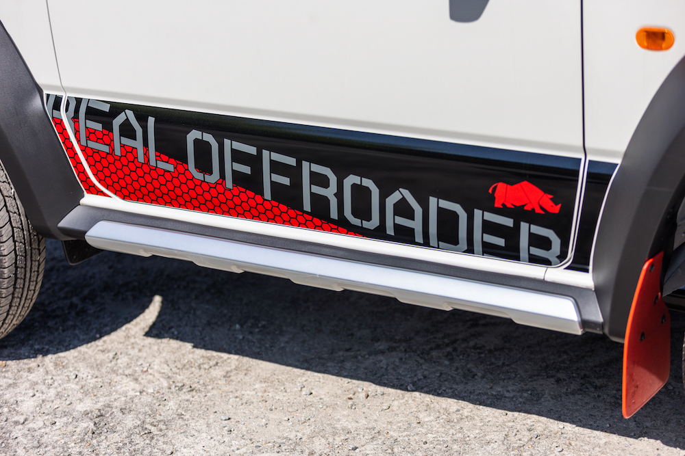 Keistimewaan model edisi terhad ini ialah pelekat strip merah, kelabu dan hitam yang tertera pada bonet dan sisi badan dengan teks ‘Real Offroader’ dan grafik Rhino.