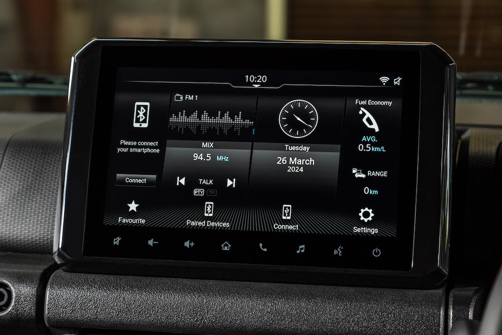 - Unit infotainment 9 inci dengan konektiviti Bluetooth, jam digital dan kamera pandang belakang.
