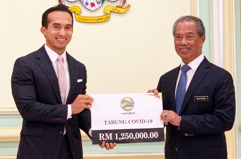 SEBAGAI sebahagian tanggungjawab sosial korporat (CSR), syarikat Naza Group menyalurkan sumbangan bernilai RM1.25 juta untuk Tabung Covid-19 yang disampaikan Pengerusi Eksekutif Kumpulan dan Ketua Pegawai Eksekutif (CEO), SM Nasaruddin SM Nasimuddin kepada Perdana Menteri Tan Sri Muhyiddin Yassin di Pejabat Perdana Menteri, Putrajaya.