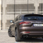Maserati Grecale GT (2023) turut menampilkan pilihan rim aloi 19 atau 20 inci, bampar warna badan, skirt sisi, sisipan gril krom, logo Maserati pada pilar-C dan empat paip ekzos krom.