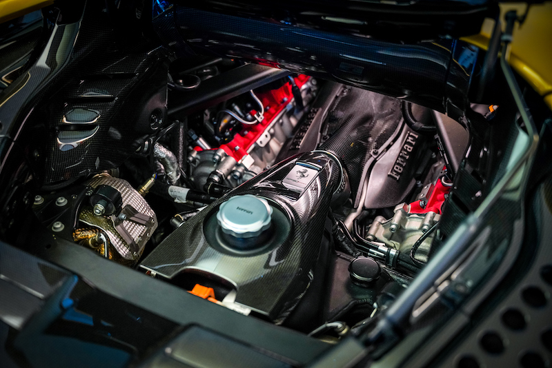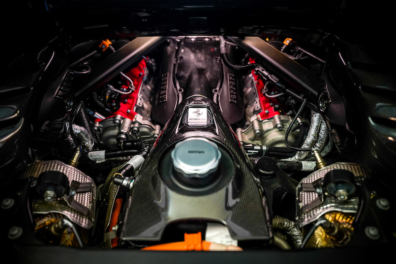 - Enjin V8 model ini adalah paling berkuasa dihasilkan Ferrari, yang menjana tambahan 59hp berbanding enjin V8 sebelum ini. Pecutan 0-100kmj dicapai sepantas 2.5 saat, dan 0-200kmj dalam masa 7 saat.
