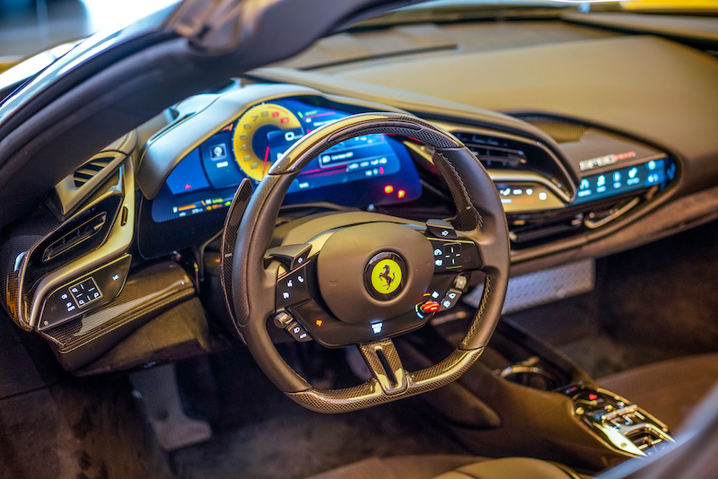 - Ada pilihan pakej Asseto Fiorano untuk kabin gaya sport, membabitkan komponen gentian karbon pada panel pintu dan beberapa bahagian lain seperti stereng. Stereng juga ada pad sentuh dan pelbagai butang sentuh.
