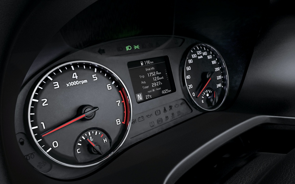 - Papan pemuka dilengkapi kluster instrumen analog dan unit infotainment skrin sentuh 8 inci dengan konektiviti Apple CarPlay dan Android Auto.