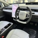 - Stereng ada konsol butang kawalan pelbagai fungsi. Tuil gear ditempatkan di sebelah kiri belakang stereng mirip kereta EV smart dan Mercedes-Benz.