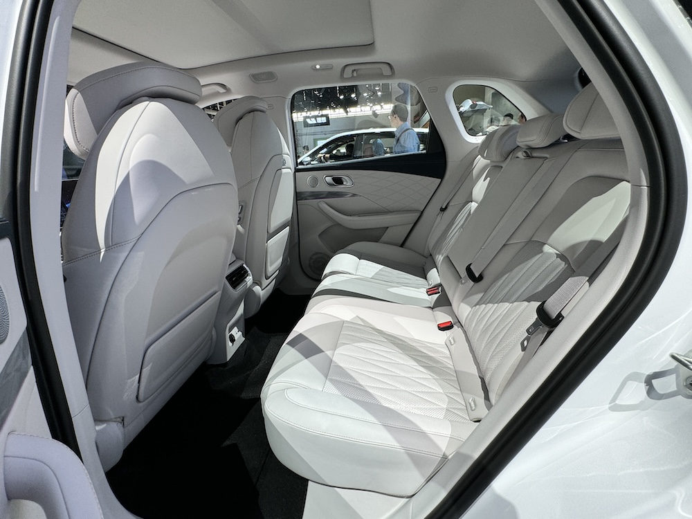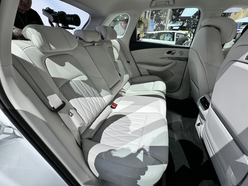 - Tempat duduk penumpang depan sifar graviti boleh disendeng sehingga 123° untuk bahagian punggung-belakang dan 6º untuk kaki. Kerusi juga dilengkapi fungsi pemanas dan urutan.