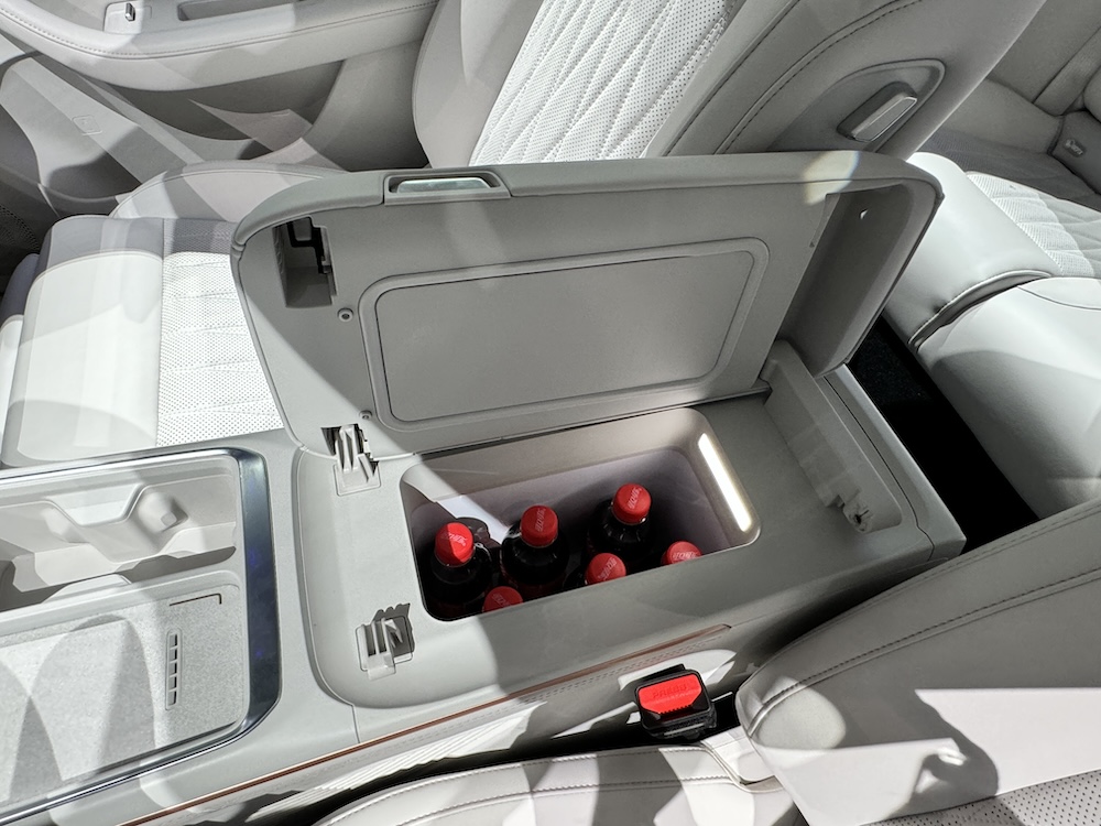 - Ada peti ais mini berkapasiti 6.6L ditempatkan di antara kerusi pemandu dan penumpang depan. Suhu paling rendah ialah -6º yang cukup sejuk untuk menyimpan ais krim.