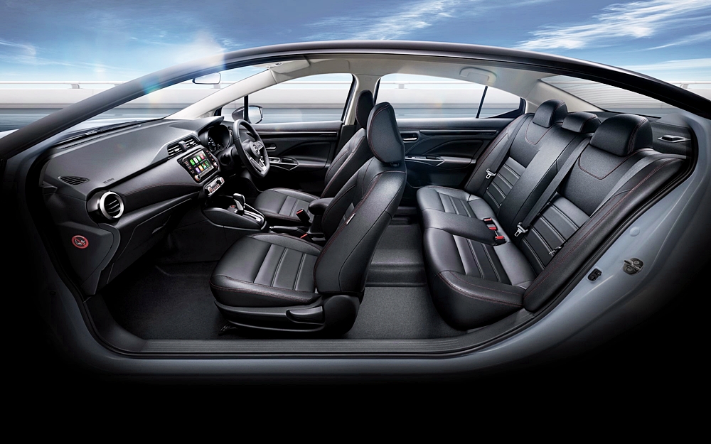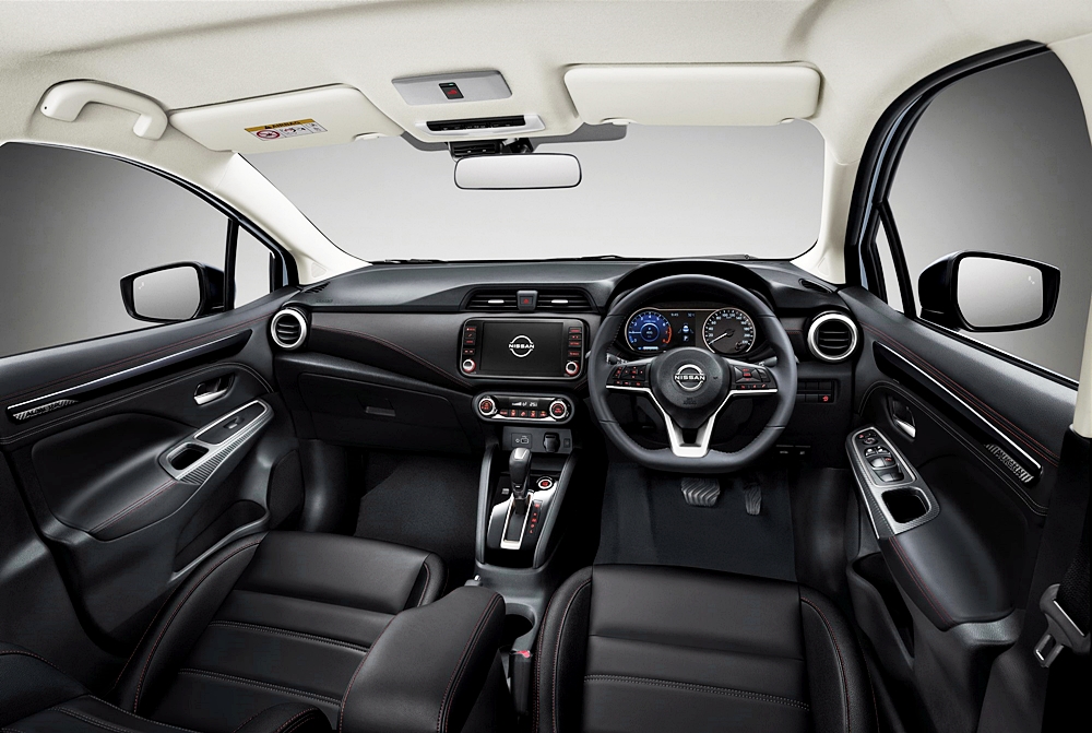 Manakala untuk varian lebih tinggi iaitu V CVT dan VL CVT, ia dilengkapi balutan kulit hitam dengan kemasan jahitan oren pada bahagian konsol hadapan, panel pintu serta tempat letak tangan hadapan.