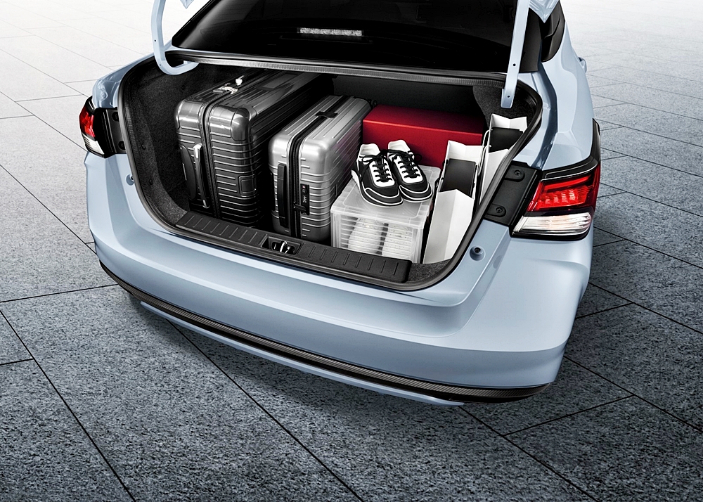 Perubahan Almera 2026 boleh dilihat pada gril hadapan berwarna hitam, spoiler hitam serta penutup bampar belakang hitam.