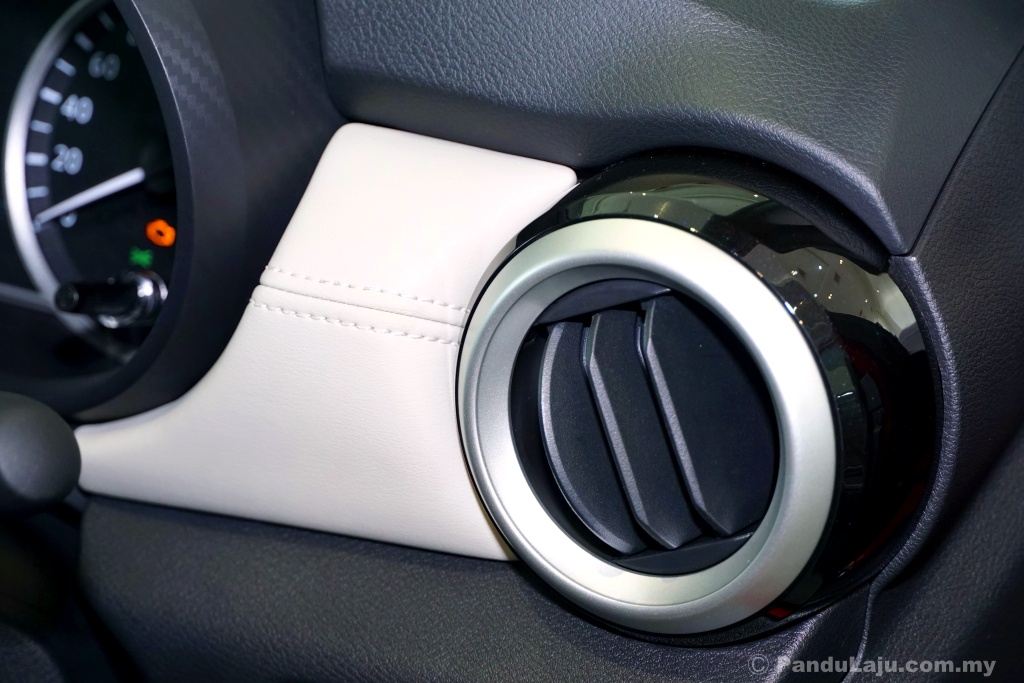 - 1.0L VLP – 98hp @ 5,000rpm, 152Nm @ 2,400-4,000; IFCW dengan IFEB; kamera pandang belakang, ADAD (semi-digital warna penuh 7″), 6 beg udara, VDC, TCS, ABS, BA, EBD, HSA; kerusi kulit