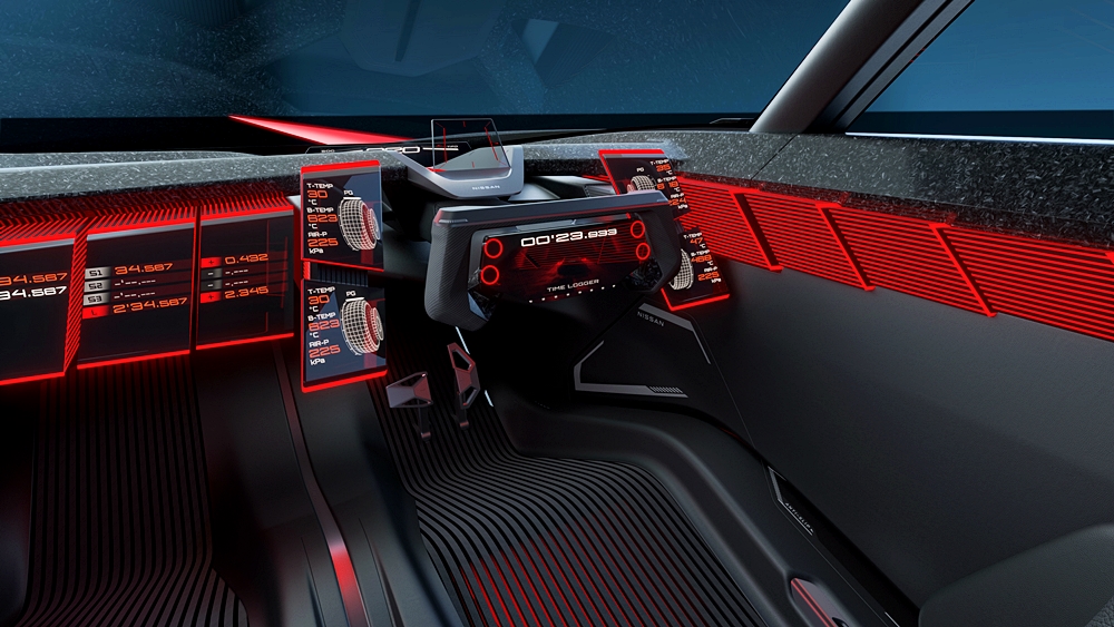 Grafik tersebut adalah hasil kerjasama dengan Polyphony Digital Inc. Dalam mod R, kabin akan menyala merah, manakala kokpit intuitif menyokong fokus pemandu, dan panel papan pemuka dianjak ke ruang tempat duduk.