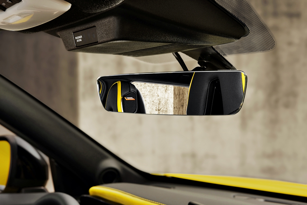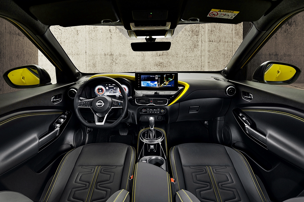 - Kemasan bentuk bumerang warna kuning pada papan pemuka (Juke N-Sport).