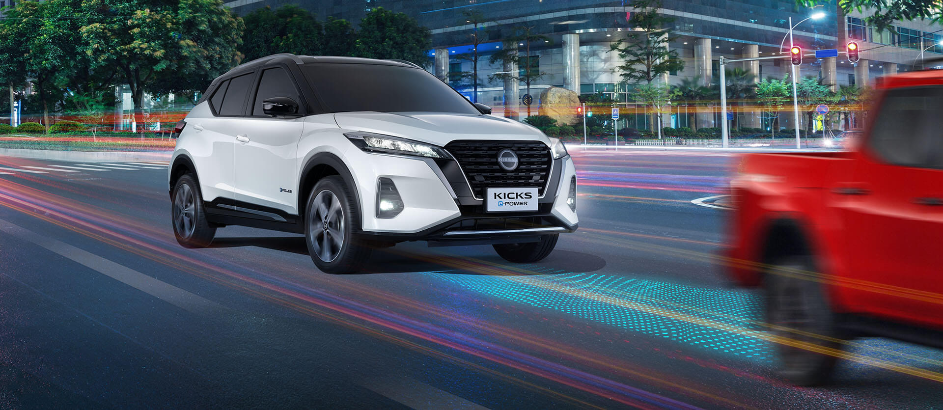 Sistem ini dilengkapi pada semua varian Kicks (2022) menerusi sensor radar yang dipasangkan pada bahagian depan untuk mengesan jarak dua kereta di depan dengan halaju relatif. Jika mengesan ada keperluan memperlahankan kereta akibat perubahan mendadak kenderaan depan, sistem akan memberi amaran kepada pemandu dengan menyediakan bantuan mengelak pelanggaran.