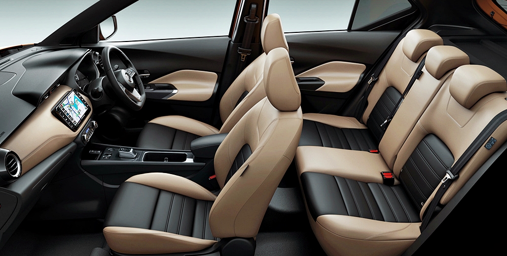 Konsol tengah dan gear Kicks (2022) tampil lebih moden dengan kemasan berkualiti tinggi. Varian dengan pilihan skema warna dwi-tona turut ditambah, iaitu warna kuning air (beige) selain jingga (orange tan). Kicks Style Edition pula nampak lebih bergaya dengan ruang kabin coklat gelap selain gril ala krom.